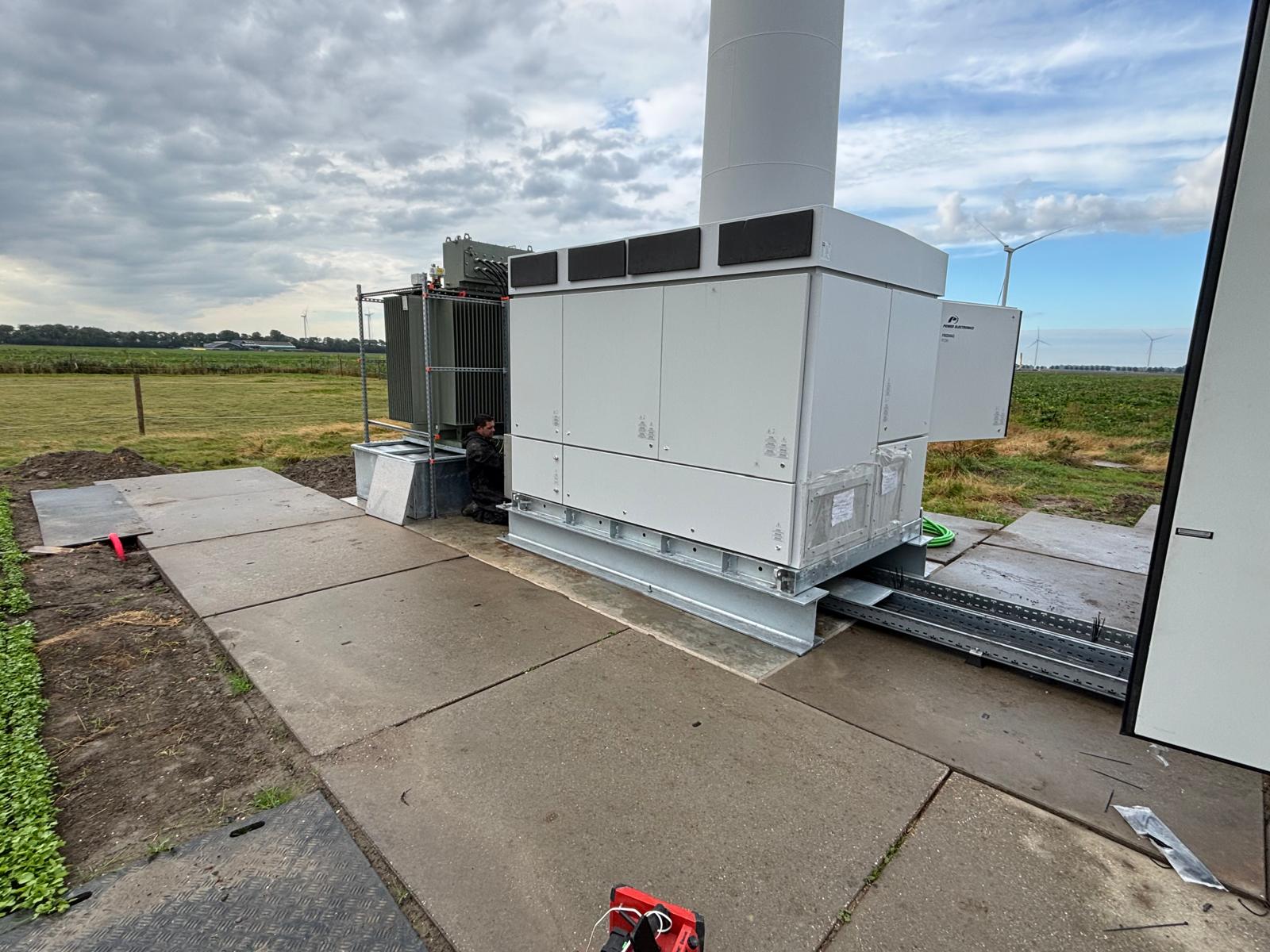 Bij deze klant installeerde ETURN een geavanceerde BESS-energieopslaginstallatie van 5MWh, colocated met een windmolen.